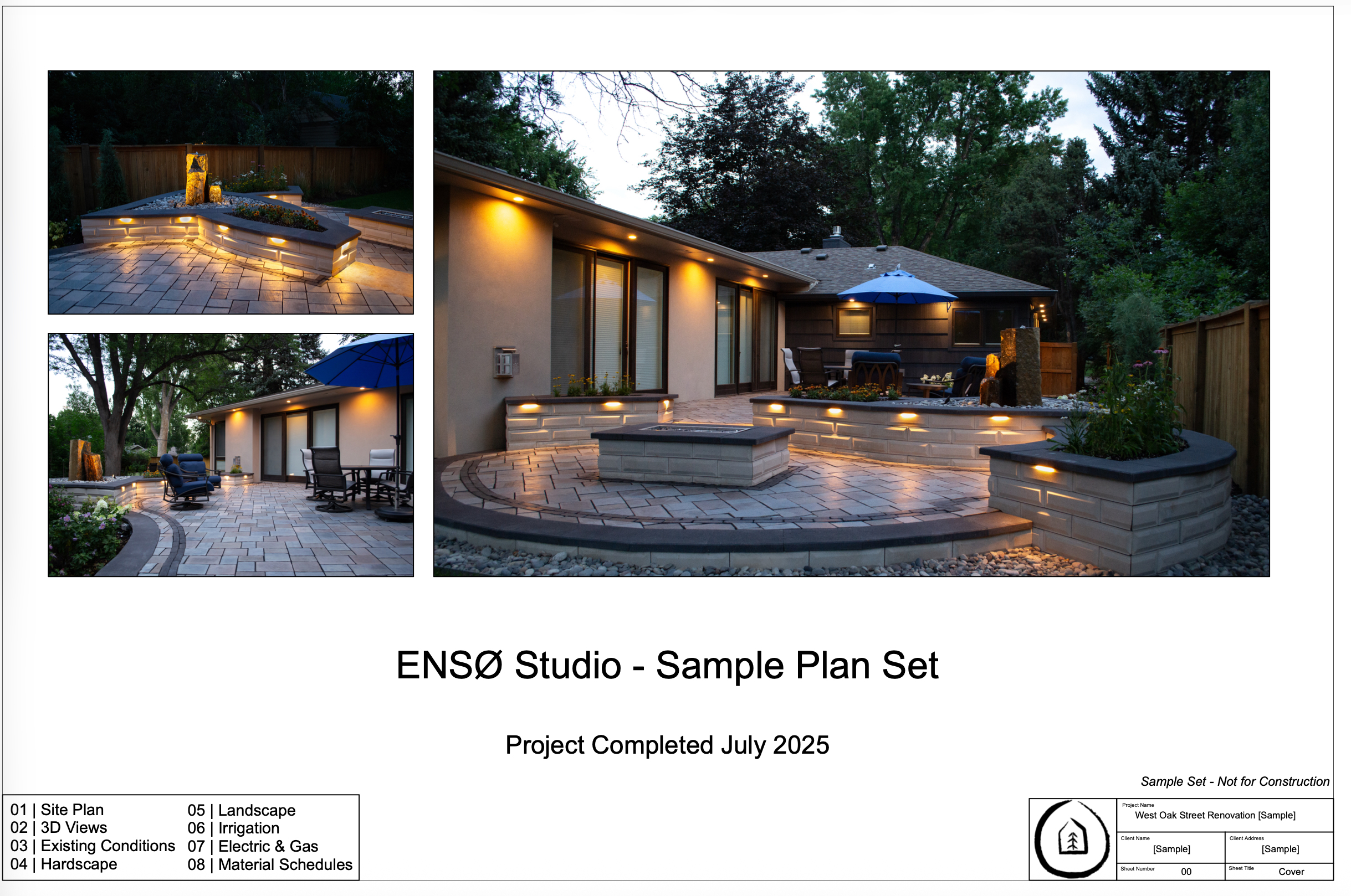 Browse a sample ENSØ Studio plan set, packed with all the critical details needed to bring the Oak project to life: